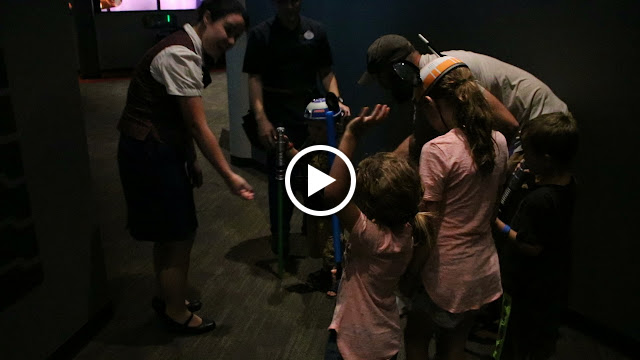 After the kids got off stage, a Disney employee approached Katy and Bryan and said that she wanted to know if Jameson and Ella wanted to be her special helpers and help her find her Star Wars "planet". Her name was Bree and she was super nice. Katy and Bryan were confused at first, but she explained she had some extra special surprises for them. Katy asked if their cousins could come along and she said of course. The rest of us where inside a nearby restaurant because it was so stinking hot. Joey came in and said to grab Ashlyn and Dawson because they got picked for something special. We were all very excited to see what was coming next. (Gracie was napping, so she missed out on 90% of what came next.)