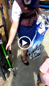 The first thing she did, was take us to ride Star Tours.  We didn't have to wait at all and got right on the ride.  She told us she would be waiting for us in the gift shop at the end of the ride.  When we got toe the gift shop, she had presents for the kids.  Each of the kids got a really neat light saber that lit up and a special pair of Mickey Star Wars ears.  What cool gifts they got!