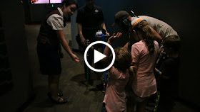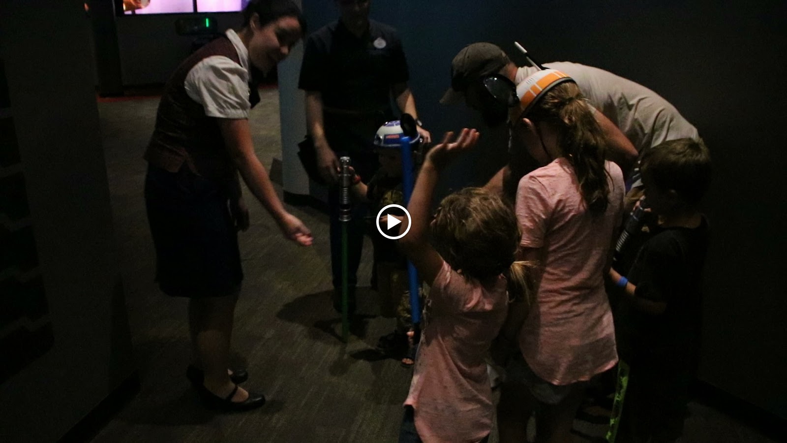 After the kids got off stage, a Disney employee approached Katy and Bryan and said that she wanted to know if Jameson and Ella wanted to be her special helpers and help her find her Star Wars "planet".    Her name was Bree and she was super nice.  Katy and Bryan were confused at first, but she explained she had some extra special surprises for them.  Katy asked if their cousins could come along and she said of course.  The rest of us where inside a nearby restaurant because it was so stinking hot.  Joey came in and said to grab Ashlyn and Dawson because they got picked for something special.  We were all very excited to see what was coming next.  (Gracie was napping, so she missed out on 90% of what came next.)