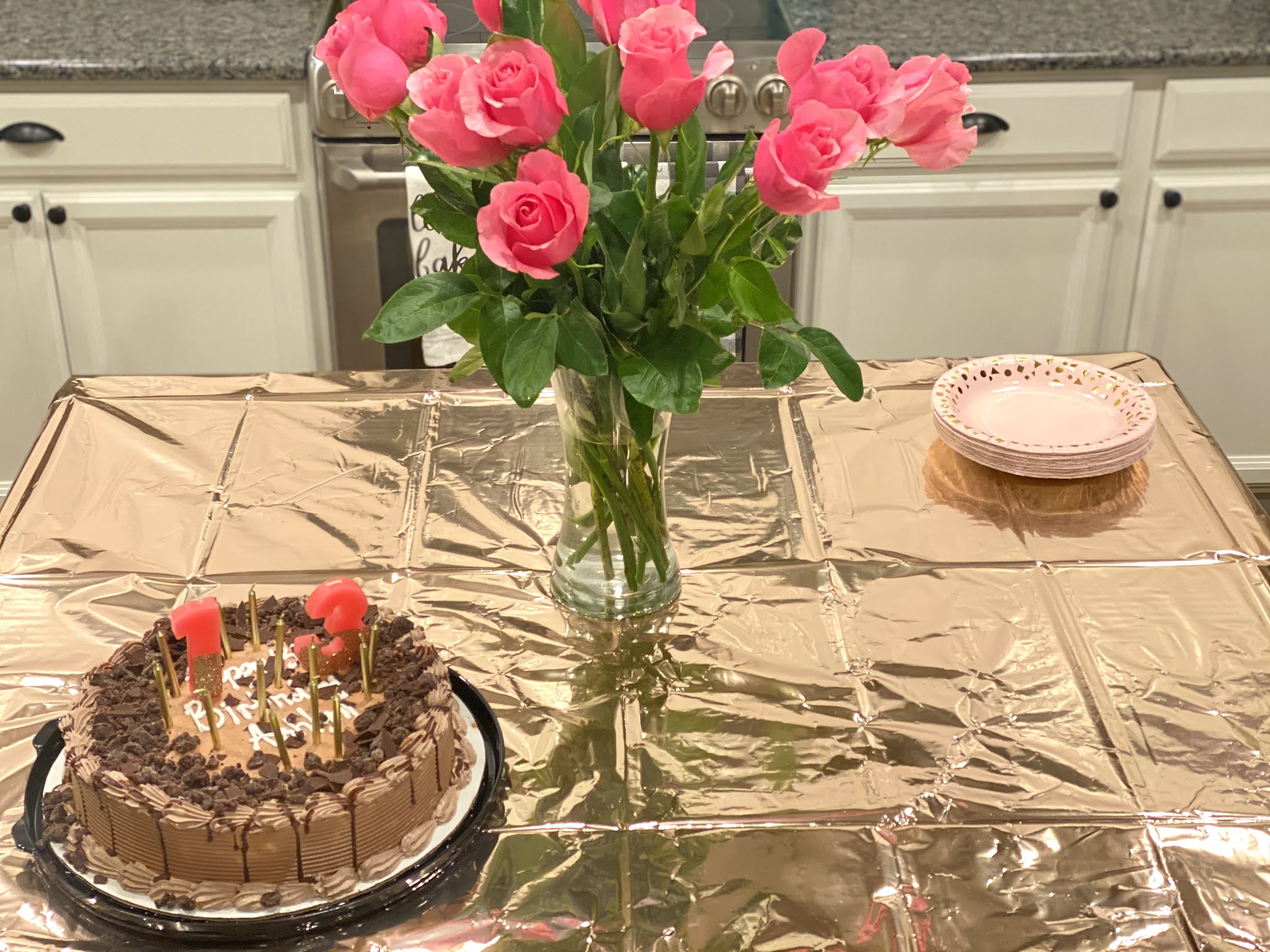 | Her cake and flowers. Ashlyn requested a cake from Diary Queen and it was really good. |
